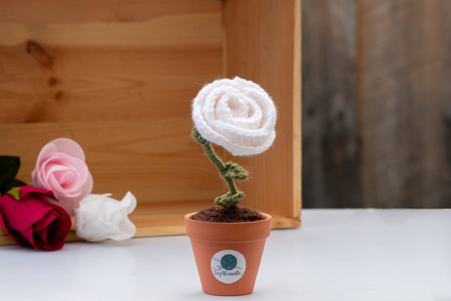 Réalisez votre Rose en pot avec ce patron exclusif signé La P’tite Maille.